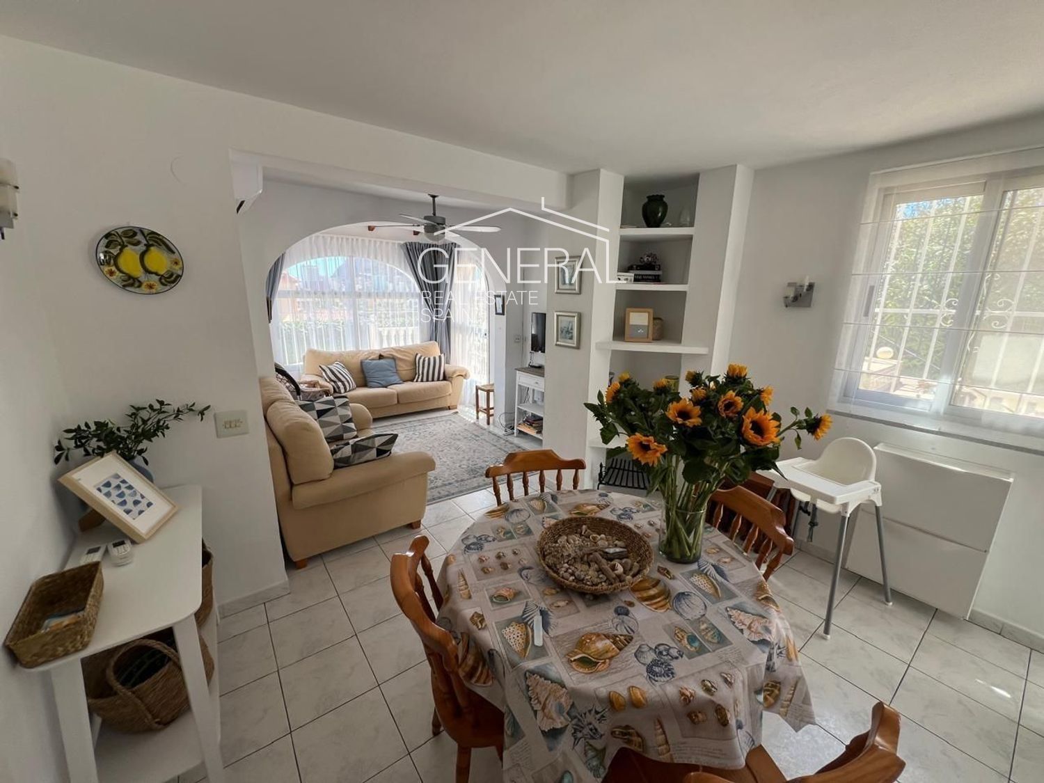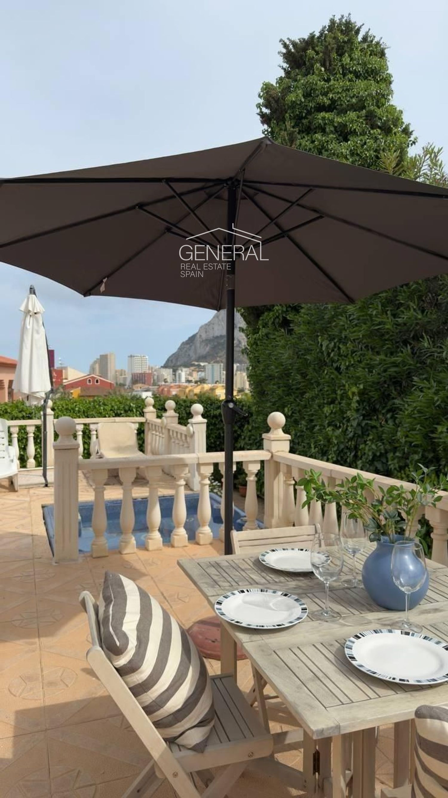 La casa está llena de luz natural y calidez. Desde la terraza y el balcón se contemplan el mar, el Peñón de Ifach y las colinas circundantes. En la terraza hay muebles exteriores — ideal para tomar el café al amanecer o disfrutar de veladas en familia.