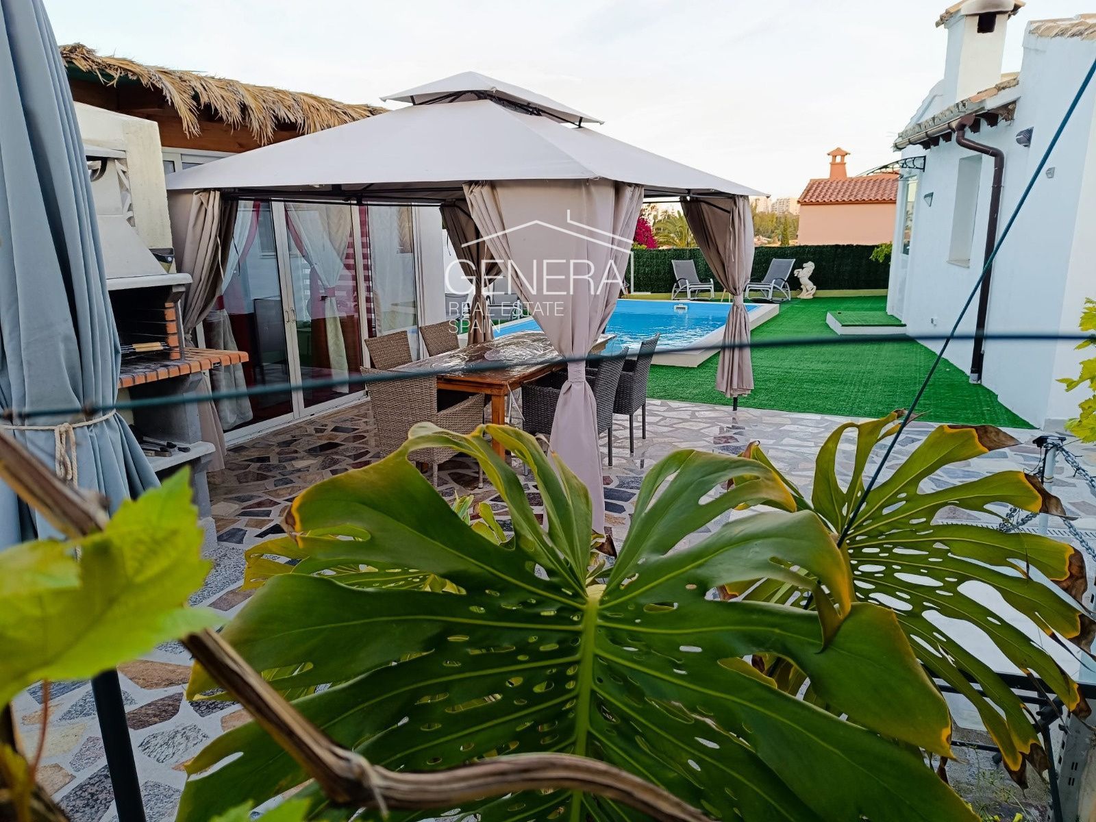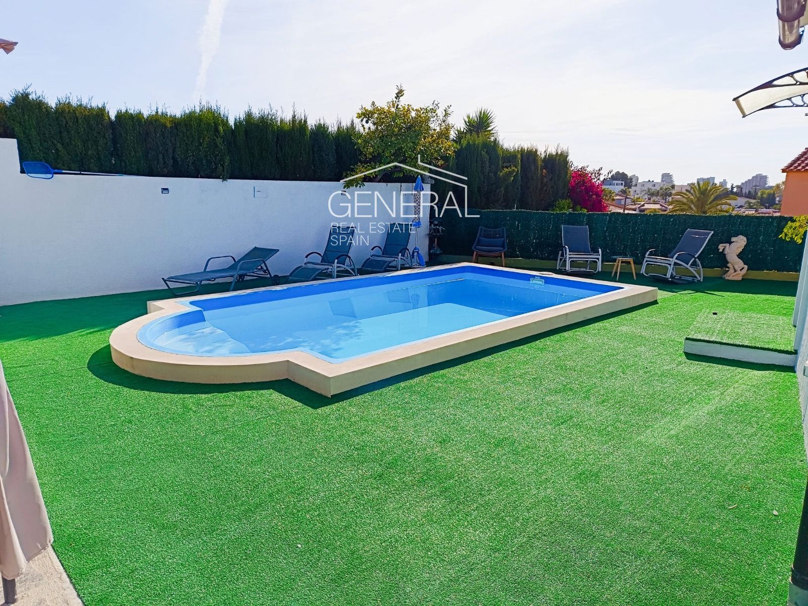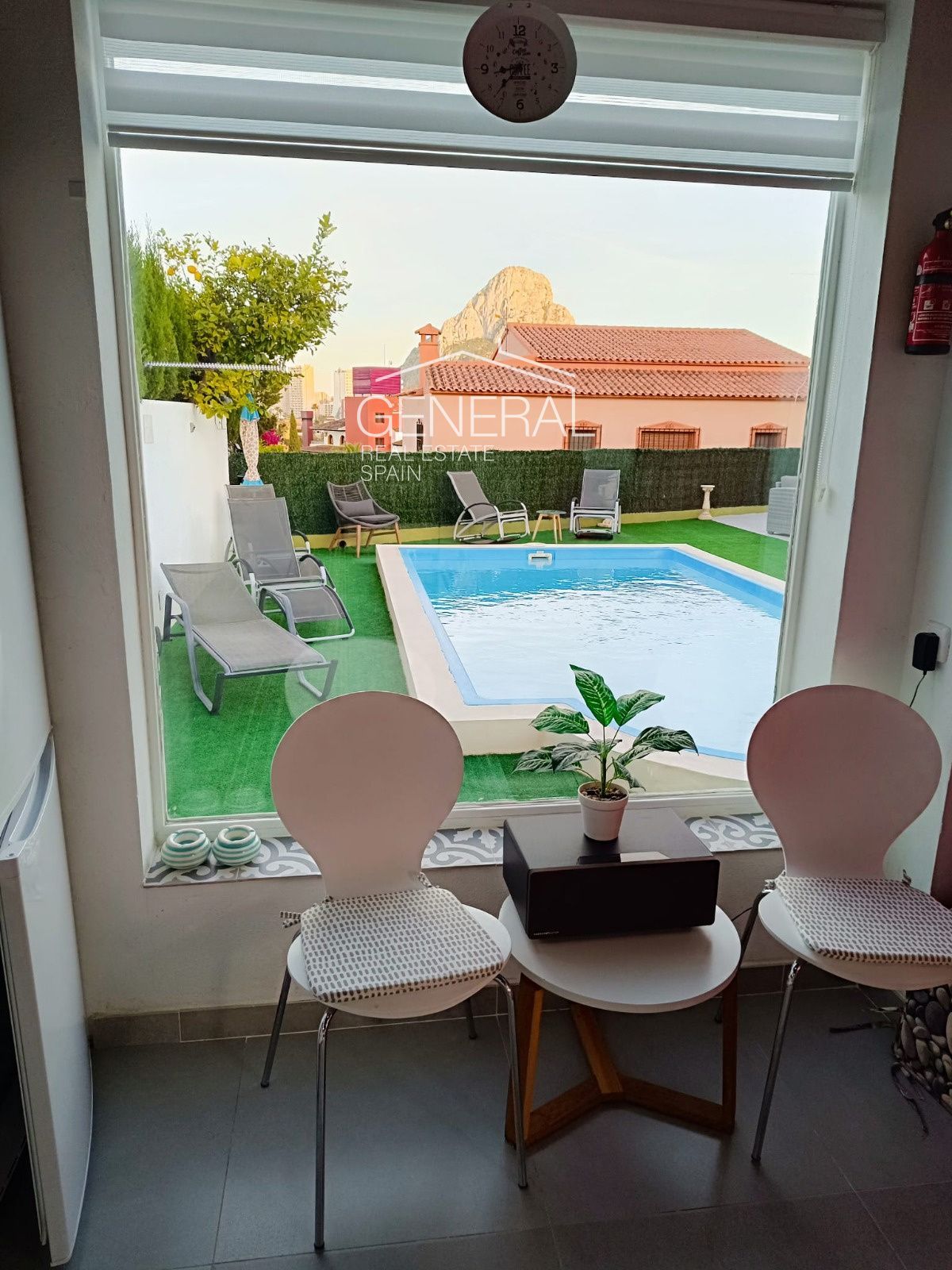 Precioso chalet adosado cerca del centro de Calpe, con vistas al Peñon Ifach y muy soleado. Tiene 2 dormitorios, 1 baño, salon con cocina abierta y con salida a la terraza. Hay cocina de verano con cuarto de baño. Calefaccion con pellets y suelos radiante, hay Aire Acondicionado. Espacio para parking y piscina privada. La ubicación inmejorable, en la zona muy tranquila, cerca de supermercado Lidl. Excelente inversion para alquiler vacacional o para vivir.